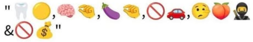 "tooth gold brain eggplant car peach" emoji sequence breakup