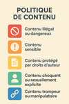 La politique de contenu correspond à un ensemble de **règles et de garde-fous** qui déterminent ce que je peux ou ne peux pas générer, partager ou encourager. Elle a été créée pour plusieurs raisons :